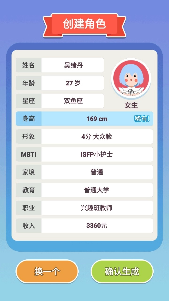 2.随机生成一个角色,我们可以选择换一个或者确定。