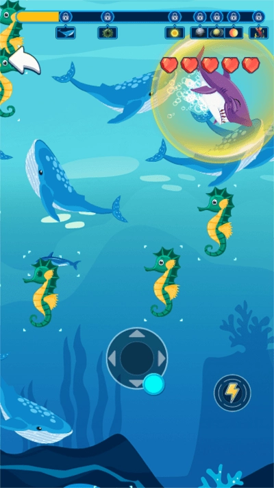3、智能的AI对手。其他海洋生物会根据玩家强度调整行为模式,保持挑战性。