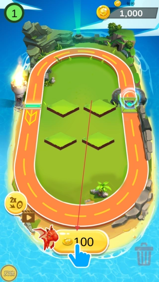 1、点击底部的“100金币”按钮,消耗金币就能在赛道的空地上召唤出基础萌龙。