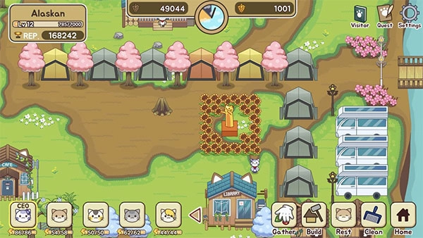 5、千万不要建太多帐篷…建议三个以下,不要升级。后面有木屋直接把帐篷拆了只盖木屋。因为那个建筑物每天早上要清扫,一天时间很短,要看很多次视频,建太多浪费时间收益也不高。我只建了三个木屋,优先升温泉收益高材料简单。