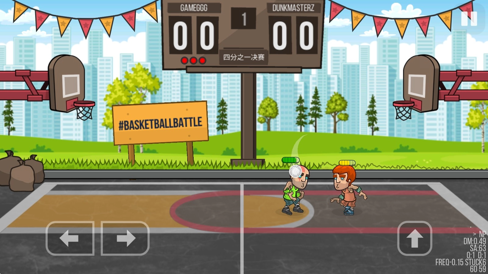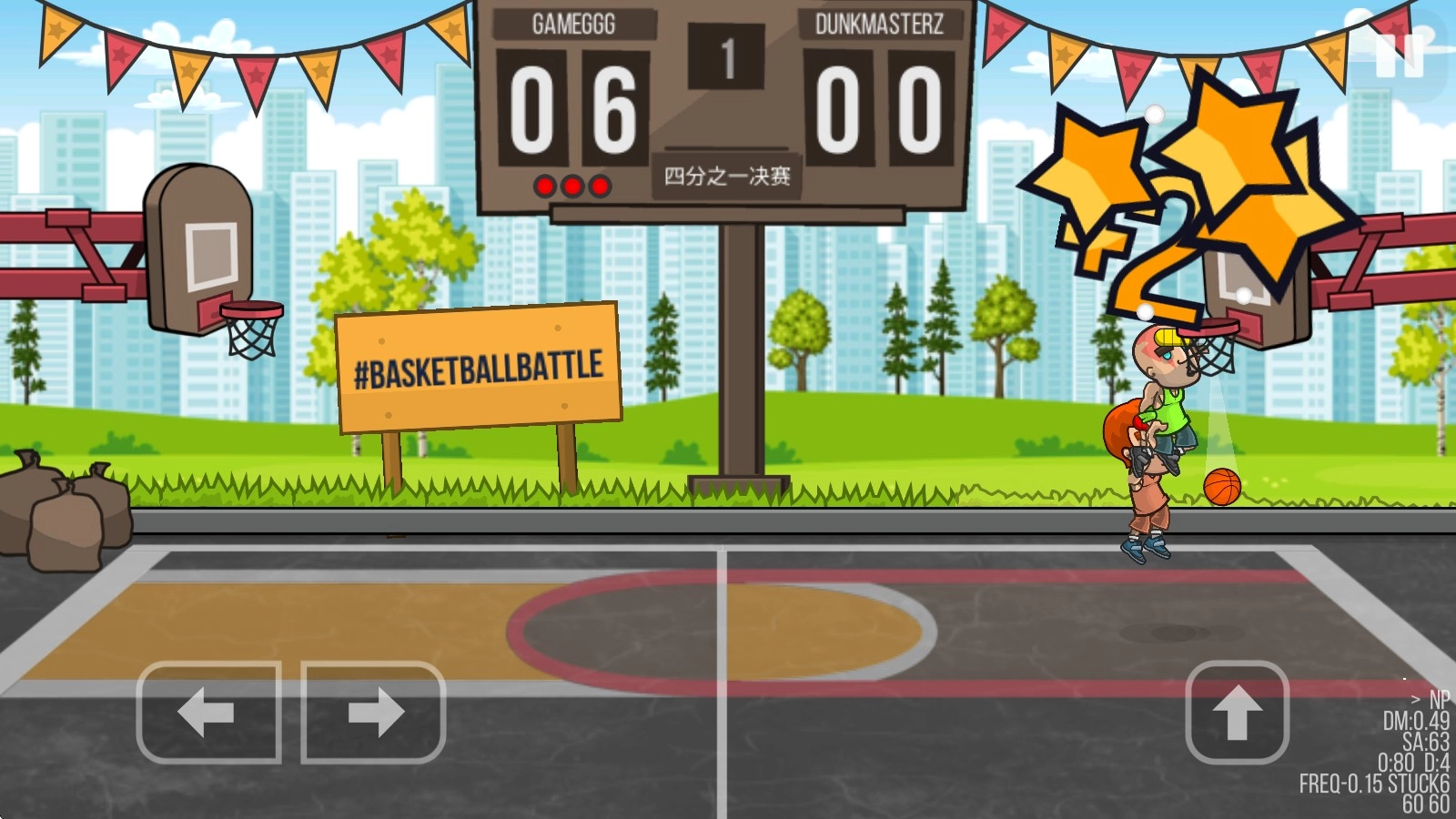 2、开始对局后,左侧的方向键控制移动,对方进攻的情况下,找准时机跳跃即可盖帽抢下篮球。