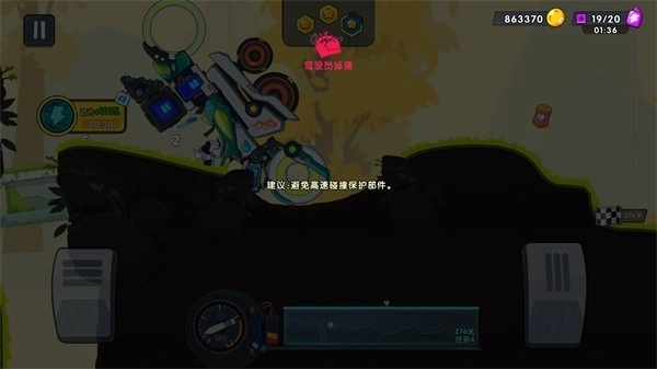 3. 在高速行驶中保持平衡尤为重要,过弯或飞跃时若失去控制,可能会导致赛车翻车,影响闯关进度。
