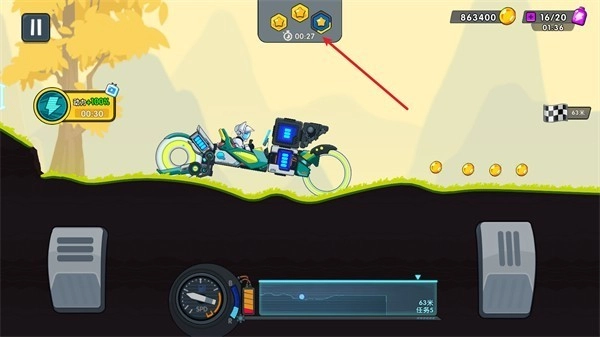 5. 赛道上方会显示当前用时,通关速度越快,最终评分越高,获取的奖励也更丰厚。