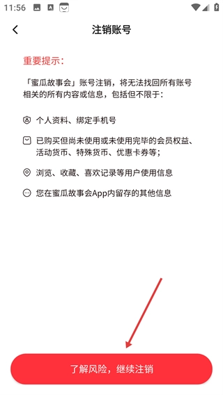 4、在注销提示页面点击【了解风险,继续注销】按钮,完成账号的注销操作。