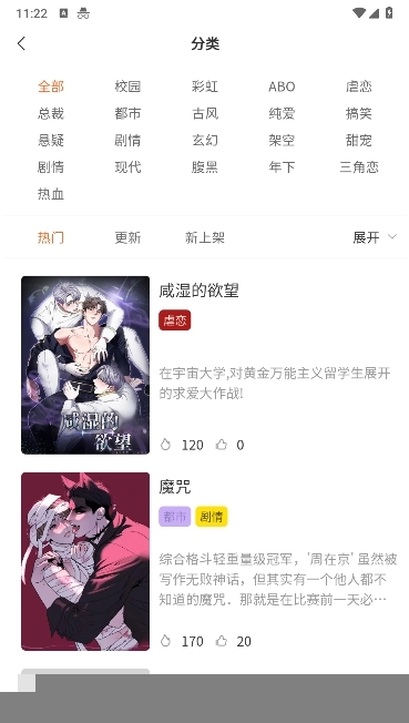 3、有众多漫画分类可供选择。