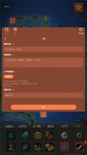 4、点击右上角的上传可以上传自己的地图。