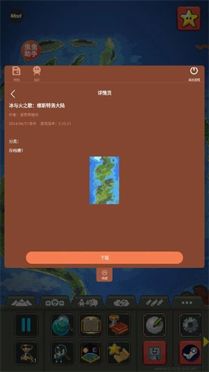 世界盒子地图是一款自由度极高的沙盒创造游戏,玩家将化身为“上帝”,借助地形塑造、文明培育等操作来构建独一无二的专属世界。游戏融合了像素风格的多文明演化系统,地图模组也能让玩家自由探索体验,欢迎感兴趣的朋友前来尝试!