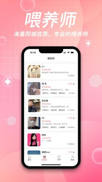 来宠上门喂养服务软件能帮您随时预约附近的喂养师上门服务,您可以查看喂养师的详细个人信息,还能为您的爱宠寻觅玩伴呢!