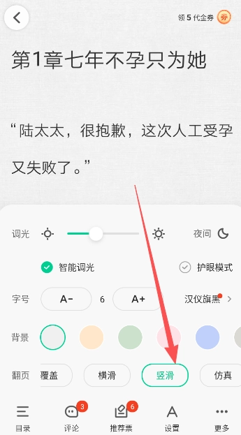 2、将默认的翻页覆盖改为竖滑,也就是竖屏上下翻页,更适配于手机端用户们的阅读。