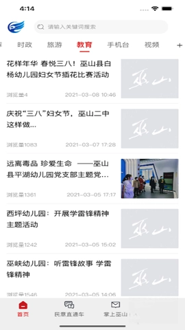 巫山是一款专为本地用户打造的便民平台,作为好用的本地服务软件,它涵盖时政、旅游、教育、医疗等多个领域的新闻资讯板块,用户能第一时间获取最新新闻,及时了解时事动态。