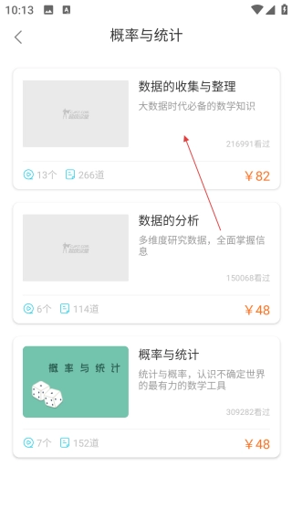 2、在概率与统计页,选择【目标课程】,进入详情页。
