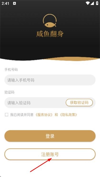 2、在登录页面点击注册账号,进入注册账号页面。
