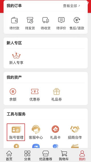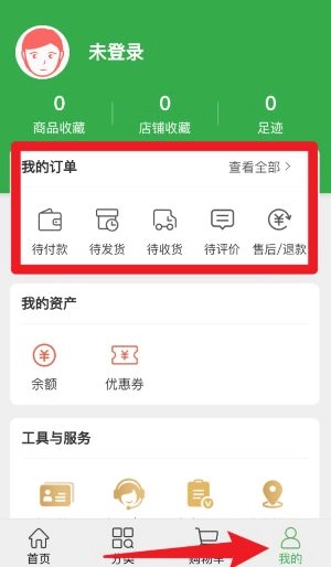 4、在“我的”页面中可管理订单状态,包括待付款、待发货、待收货、待评价及售后退款等流程。