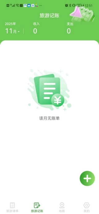 3、在旅游记账中可以点击“+”号进行快速的记录旅游过程中的每一笔花销;