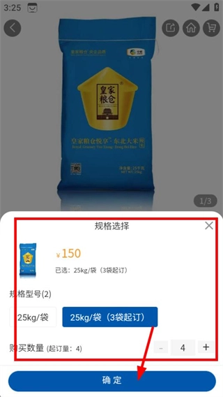 4、在规格选择页面,确认规格和数量后点击确定按钮,进入登录页面。