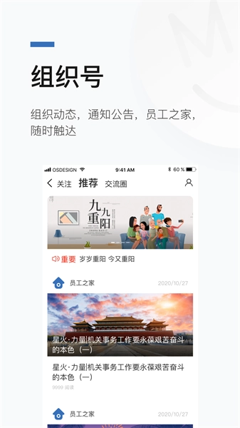 宿慧办作为一款高效的沟通协作软件,能够连接人与数据、信息及系统,为组织成员提供涵盖沟通、云空间、组织号、共享日历、直播会议等多种办公场景的丰富功能。该软件运用云服务与移动互联的先进技术,从多方面优化组织办公的协作体验,切实提升工作效率,助力团队成员更轻松地平衡工作与生活。