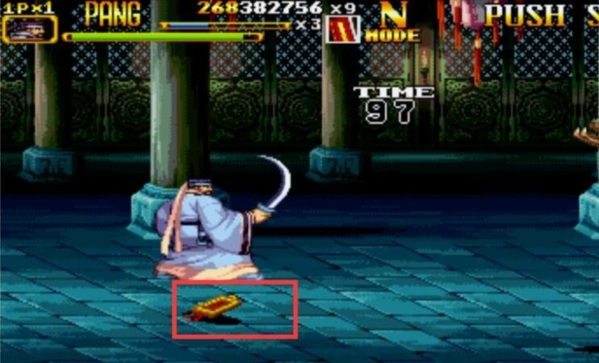 5、如果我们想打真吕布那么我们就不能和假吕布发生战斗,我们在最后的一关的场景内,你会看到左慈丢下了一块令牌,我们捡起它就可以与真吕布发生战斗了,打真吕布是有要求的,必须分数达到60万以上才有资格。