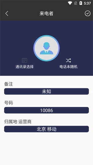 在“来电用户”中填写来电人姓名、手机号码,并可设置号码归属地,让来电更真实可信。