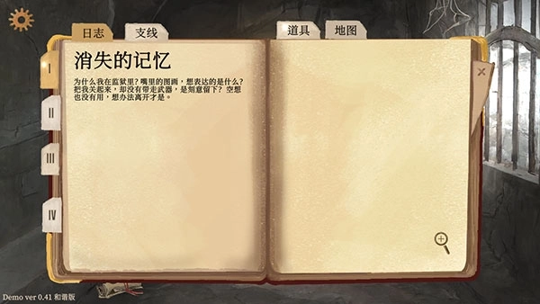 2、书本内含有日志、支线、道具、地图等分类。