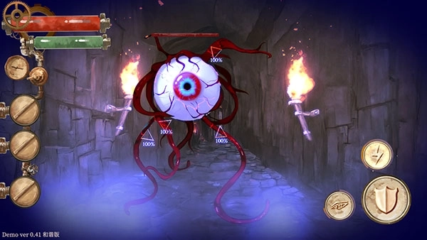 默示录献祭最新版(The Apocalypse Sacrifice)是FOG GAMES开发的冒险解谜游戏,这款作品的设计颇具新意——虽然核心玩法属于冒险解谜范畴,但它采用了独特的手绘美术风格,还创新性地融入了战斗系统,这在同类游戏中并不常见,也是其一大特色。战斗机制方面,游戏包含普通攻击、防御架势、技能伤害和杀手之眼四大模块。前三者的功能比较直观,玩家很容易理解;而杀手之眼是游戏的独特设计,作为战斗辅助技能,开启后能清晰显示怪物的各项弱点,帮助玩家更高效地击败敌人。