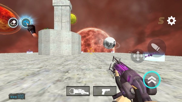 5、你可以在空间与星系中,放置武器、枪支、飞船、盟友以及nextbots等各种物品与道具,创造一场完全自由的快节奏现代化第一人称射击游戏。