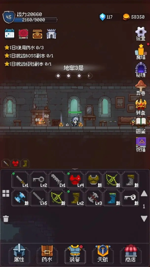 1. 令人兴奋的地下城战士战斗,成为一个强大的冒险家,并开始令人兴奋的挑战。