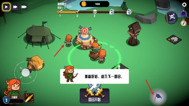 3、准备好之后点击回合开始,就会进入战斗阶段,右侧还可以释放英雄技能。