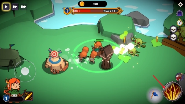 1、游戏开始后,拖动左侧摇杆控制英雄移动,来到指定位置进行建设。