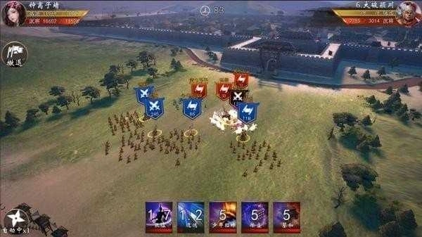 4.在战斗进程中指挥军队作战,借助地形优势、兵种之间的克制关系以及武将所具备的技能来赢得胜利。