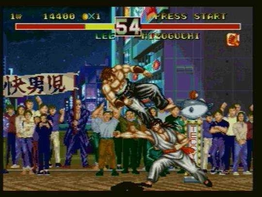 卡洛夫的复仇是斗士历程系列的第二部作品,这款游戏因曾被CAPCOM指控抄袭而备受外界关注。游戏中的弱点机制让玩家印象深刻,每个角色都有专属的弱点部位,若被对手持续攻击该部位,弱点会不断闪光,一旦承受次数超限,角色便会陷入晕眩状态。除了常规必杀技外,本作角色还拥有强化版的必杀技。当玩家在难度2及以上的关卡中一局未输地击败KARNOV后,将迎来游戏最强角色——公牛的挑战。公牛的角顶攻击极具威胁,与之对战很容易陷入被动局面。