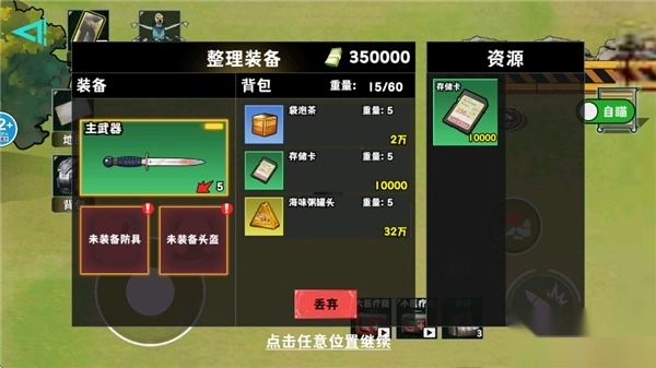 3、点击箱子中的物资放入背包中。