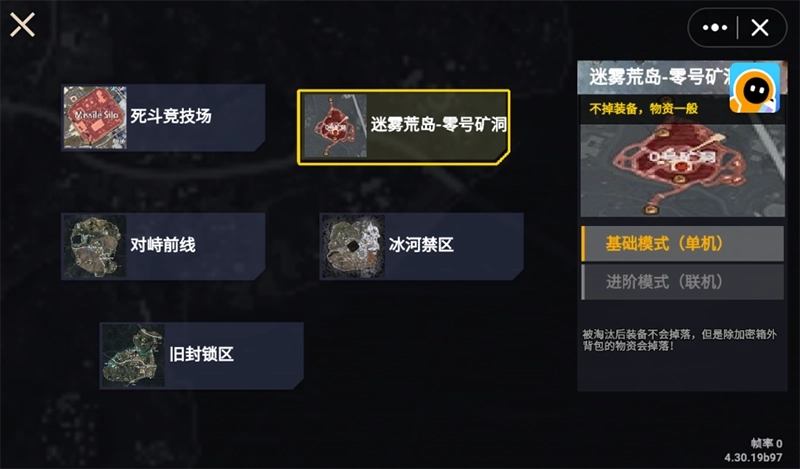 基础模式:不掉装备,物资一般