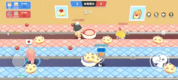 2、游戏里的四名玩家会分成两队,一队负责搬运樱桃,另一队负责搬运蛋糕,之后在场地中间的桌子上将两者组装成樱桃蛋糕,成功完成组装就能获得1分。