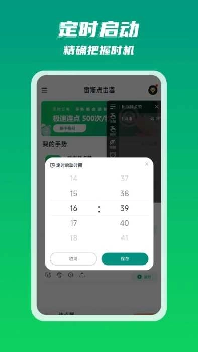 随时在任何位置记录点击或滑动操作,解放2265用户双手,实现连续点击加速,轻松设置点击频率、时间间隔。