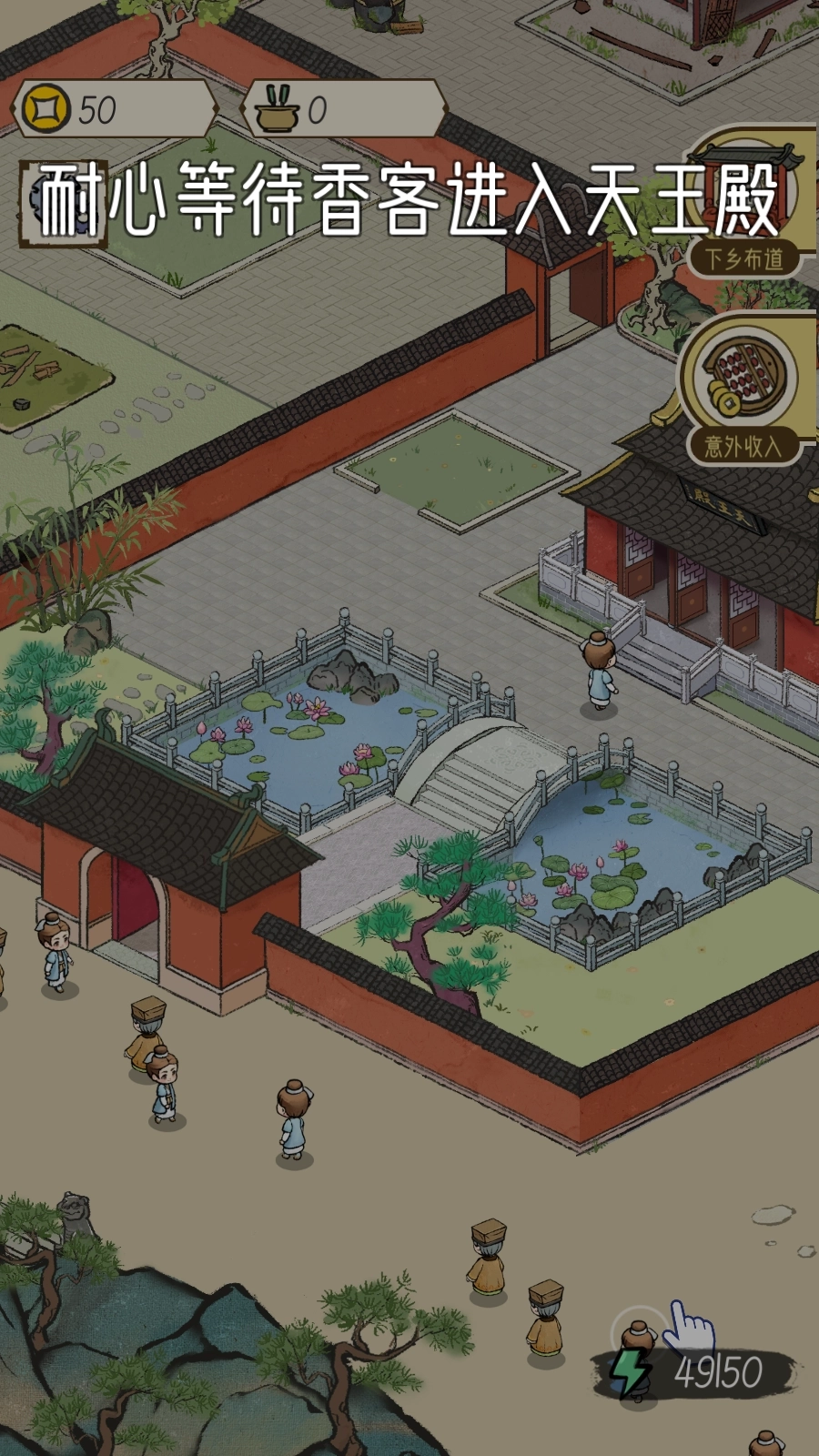 3、吸引各类不同的香客前来你的寺庙,能为寺庙带来更旺盛的香火,还能解锁更多精彩的剧情故事;