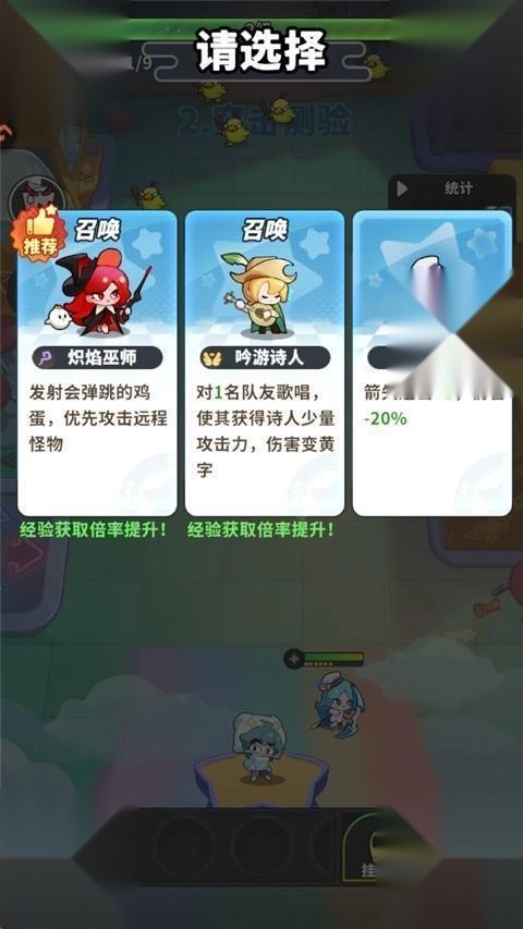 3、击败敌人获得经验值升级后选择一个角色。
