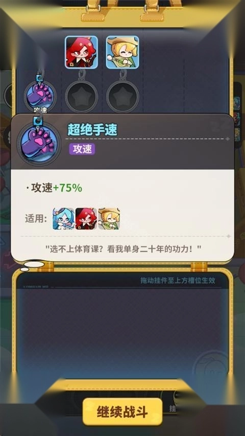 4、击败相应的敌人可以获得挂件,可以选择放置在不同的角色中。