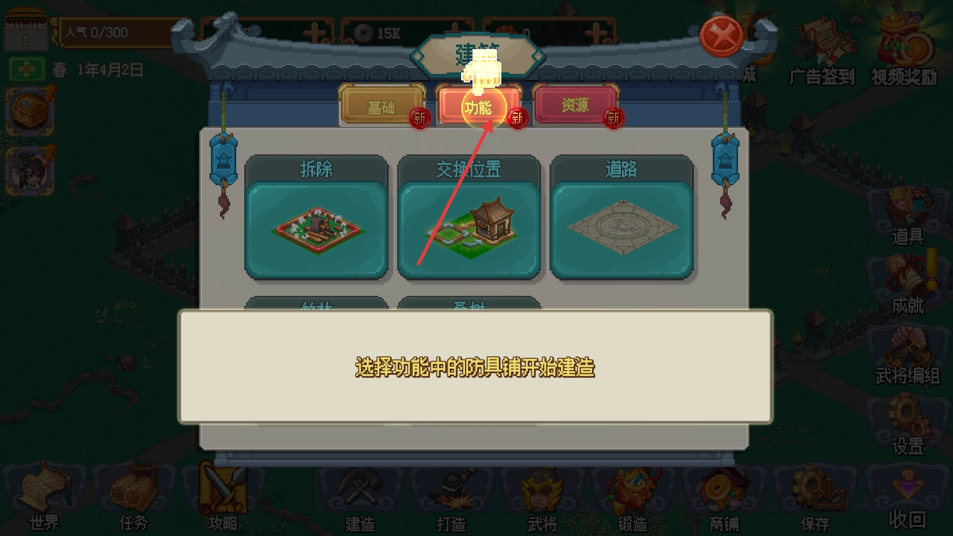 1、游戏初期按提示点击建造按钮,进入建筑界面,开启城池建设的第一步。
