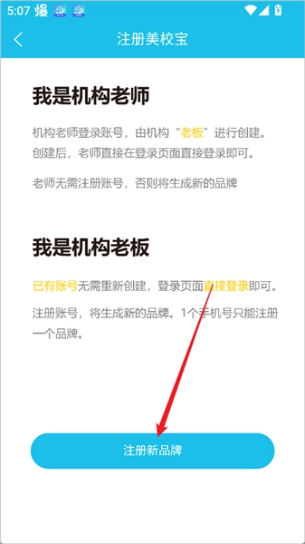 2、选择【注册新品牌】选项,开始开通商家身份。