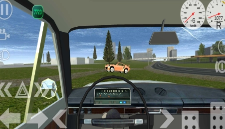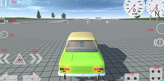 3、进入到驾驶场景当中了,包括录像、大灯、转向灯、启动等按键,我们可以通过左下角的左右控制车辆移动的方向,通过右下角【刹车】后退和【油门】前进按钮来控制车辆的速度,