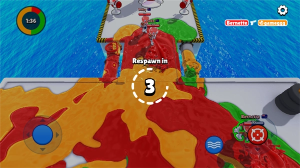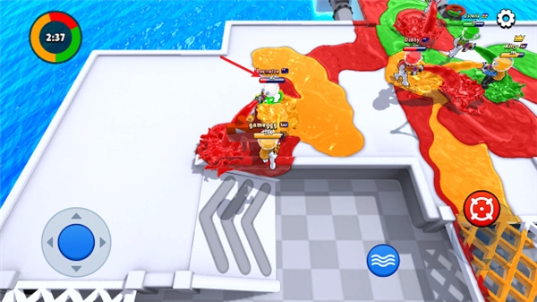 2.攻击与染色:遇到对手就用颜料攻击他们!同时把你经过的区域都染上自己的颜色。