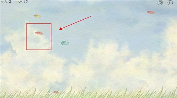 4、因为我们是逆风漂流,因此我们需要触碰绿色叶子,绿色叶子可以使你获得一个加速效果,长时间没有加速你就会迎面出来的风吹到屏幕之外,直接导致游戏结束