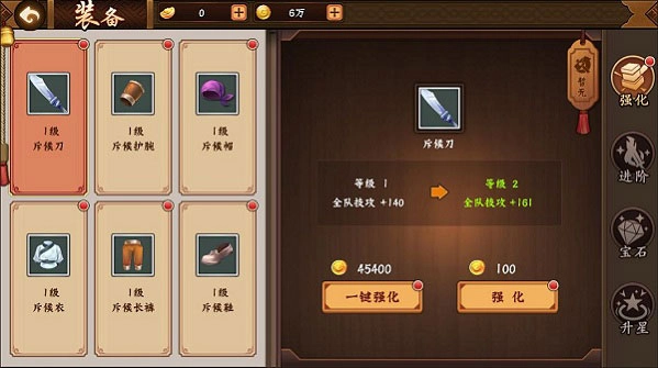 装备强化通过花费金币进行,强化可以增加装备的固有属性。装备的强化等级不能高于玩家等级的2倍。