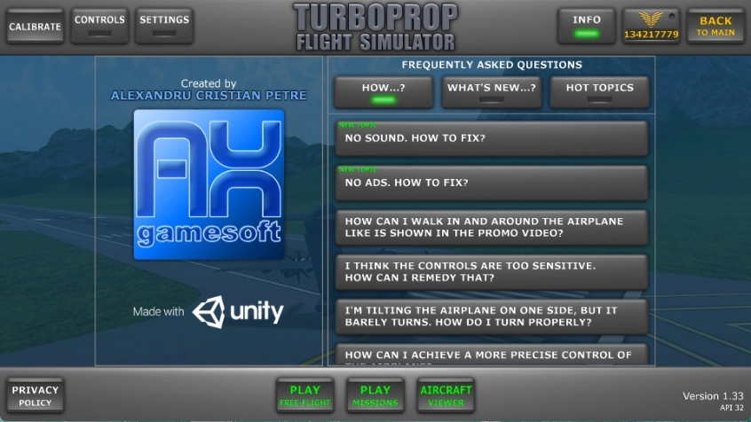 涡轮螺旋桨飞行模拟器1.33版本在原有基础上做了不少改进与优化。除此之外,该版本还新添了mv-40和hc-400这两款飞机变体。不过需要注意的是,刚上线的部分机型存在闪退问题,并且当前界面暂时只有英文版本,如果大家希望使用中文版,还得等待汉化组的高手们完成汉化工作。
