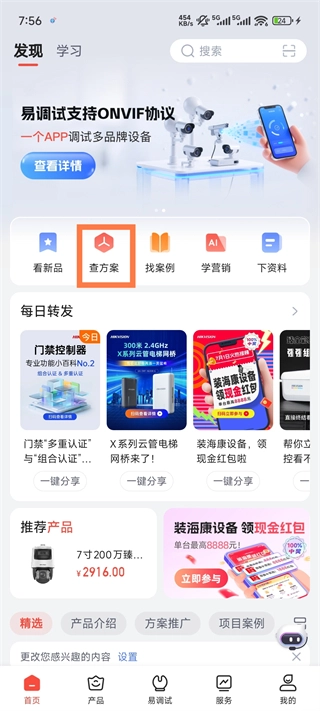 海康云商App是安防领域的一站式数字化服务平台,全面整合了售前、售中到售后的全流程服务,为用户提供方案选型、产品中心、技术指导、售后服务等便捷功能,用户可按需选用,能充分满足各类使用需求。用户通过该App能随时随地查询各类产品信息,快速了解监控产品的外观、像素、功能等内容,获取信息轻松便捷。