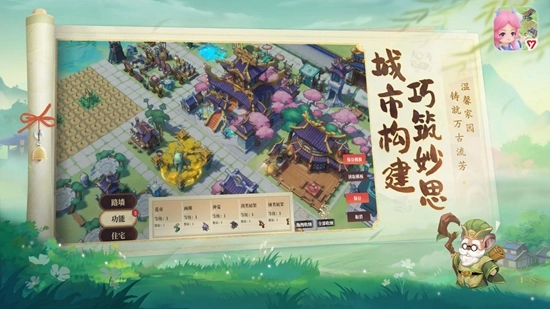 3.巧筑妙思 城市构建:玩家可以利用士农工商建筑,建造、经营和发展自己的城市生态体系,随着城市等级繁荣度的提升,还能解锁全新建筑。