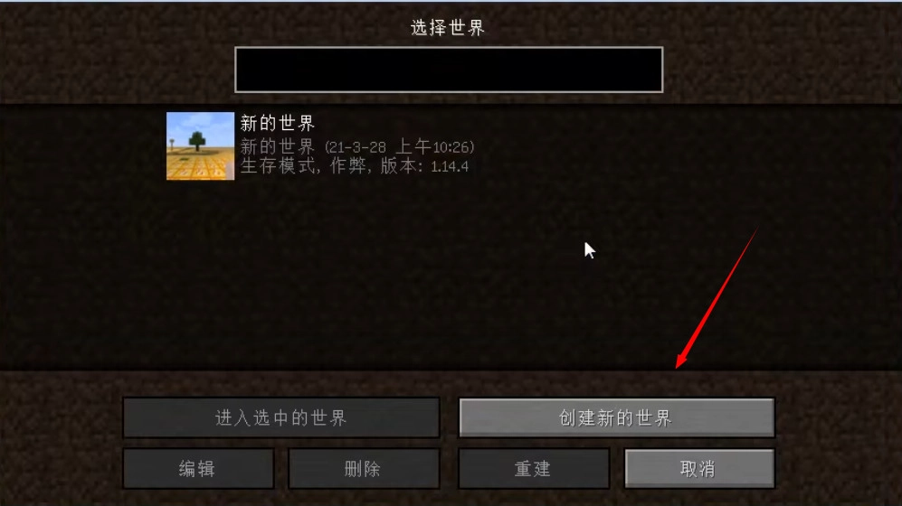 1、玩家进入游戏后,首先要进行随机世界的创建操作。