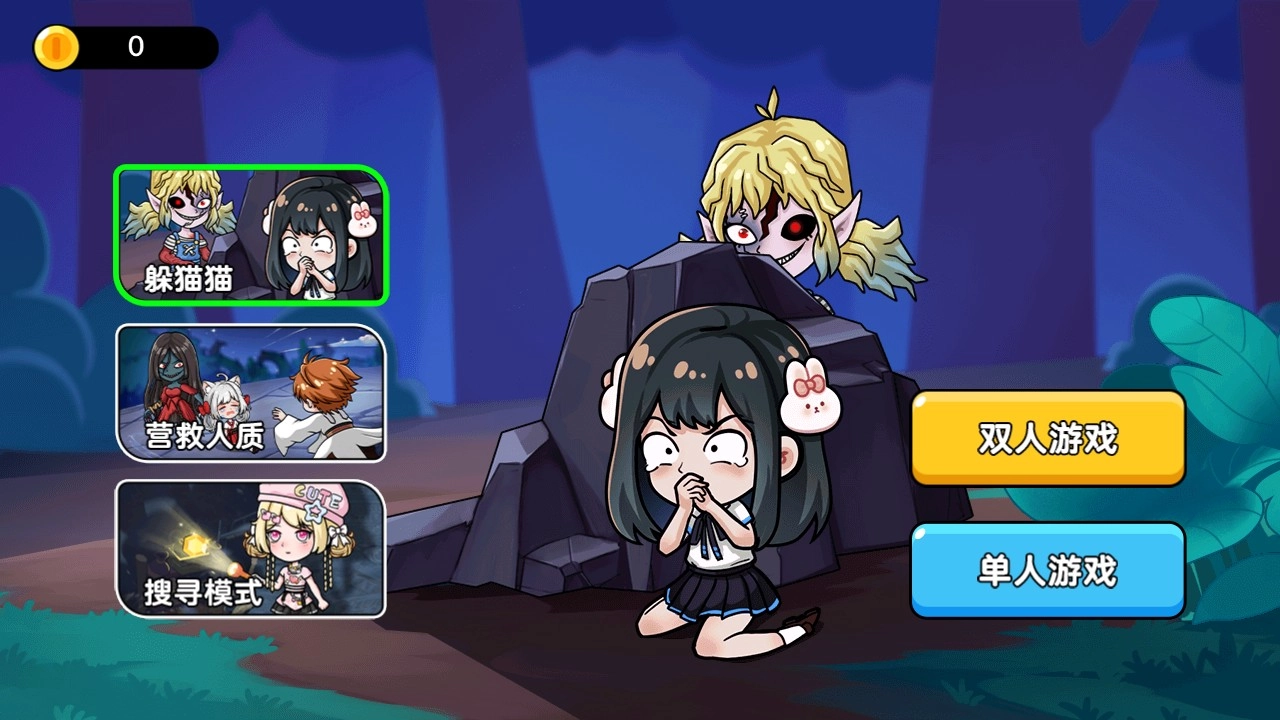 恐怖冒险躲猫猫是一款融合哥特美术风格与效果的躲猫猫游戏,整体采用卡通漫画风格与元素。玩家可操控不同角色开启冒险,还能选择不同阵营,加入追逐者或隐藏者阵营,同时可学习全新技能。游戏中所有人物模型精致美观,场景刻画细腻,带有较暗黑的风格与元素,喜爱这类游戏的玩家千万不要错过!