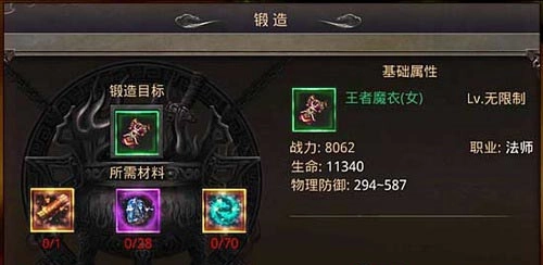 相比于雷霆装备、烈焰装备和光芒装备,王者装备的战斗力和基础属性都要高出一大截,对角色综合实力的提升也是非常高的!当然所需要的花费也是非常高的。锻造或重铸王者装备需要新的卧龙材料,包括卧龙卷轴·王者和卧龙印记·王者,两者是锻造和重铸王者装备的必要材料,使用卧龙宝藏密钥开启卧龙山庄内的神秘宝箱有几率获得卧龙卷轴·王者,探索卧龙庄主遗骸可以获得卧龙印记·王者。这些材料收集的花费也是非常高昂的,非大RMB玩家不可及!