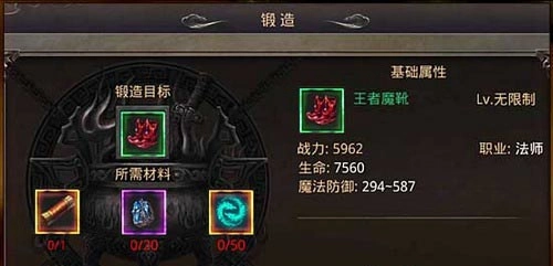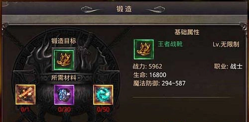 2、重铸:卧龙卷轴·王者*1+卧龙印记·王者*50+烈焰魔靴
